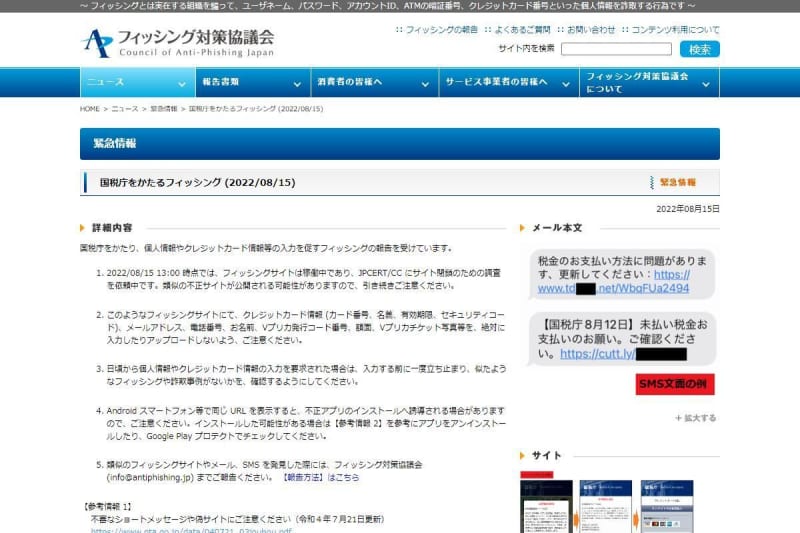 フィッシング対策協議会(Council of Anti-Phishing Japan)は8月15日、…