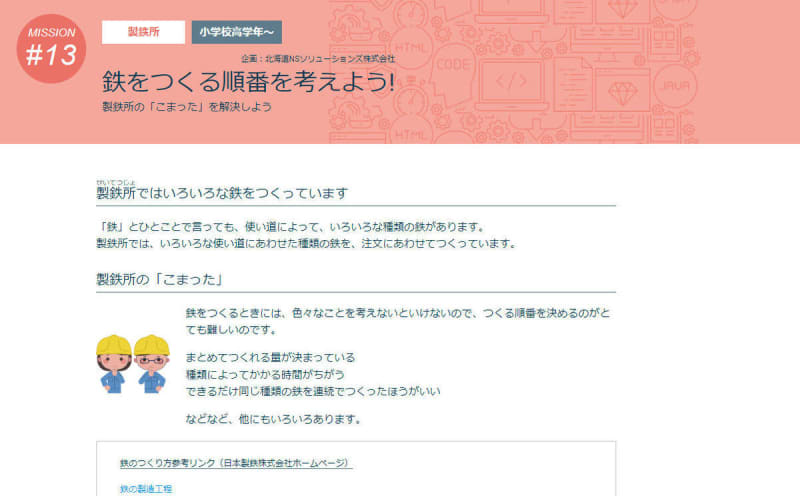 日本製鉄と日鉄ソリューションズ(NSSOL)は、小学校高学年向けに製鉄の生産管理をテーマとしたプログ…