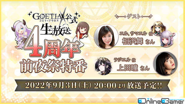 アピリッツは、「ゴエティアクロス」の4周年前夜祭キャンペーンを開催、本日9月3日20:00から公式生…