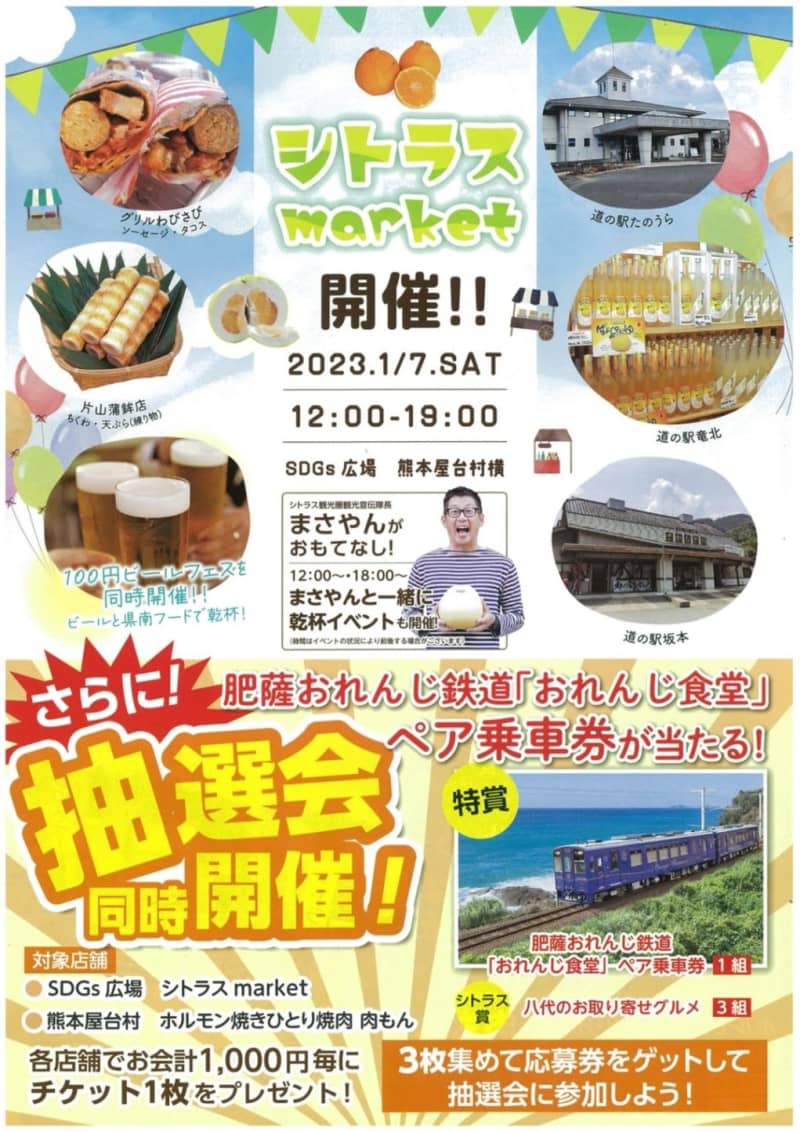 Published by 八代連絡帳 八代市・氷川町・芦北町の観光物産PRイベント「シトラスMarket」が熊本市屋台村及びSDGs広場で…