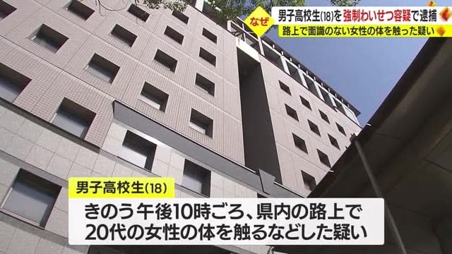 10月31日夜、鹿児島県内の路上で20代の女性の体を触るなどした疑いで、鹿児島市の18歳の男子高校生…