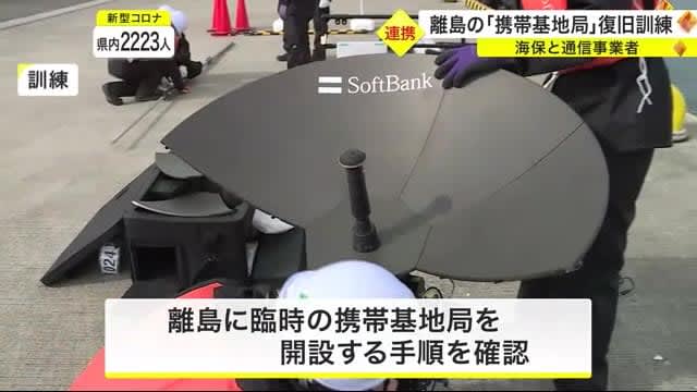 災害が発生した際、離島の電気通信設備が被災し、携帯電話が使えなくなったという想定で、設備を迅速に復旧…