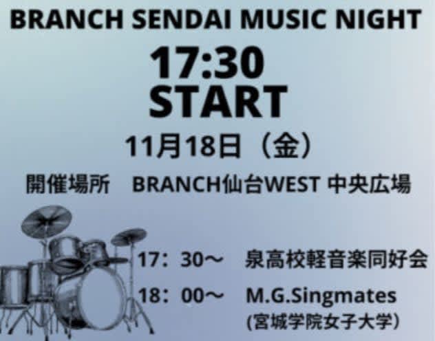 Published by 仙台つーしん いかがお過ごしですか、nittaです。 仙台市泉区のブランチ仙台WEST中央広場で『ミュージックナイ…