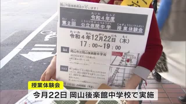 岡山市が3年後の設置を目指している、県内初の「公立夜間中学」への理解を深めてもらおうと、12月11日…