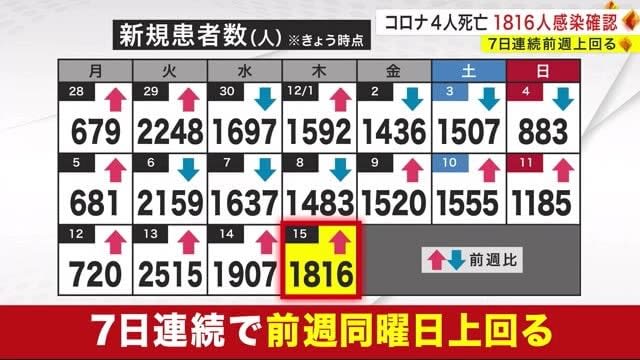 岩手県内では12月15日、新型コロナウイルスの患者4人の死亡と1816人の感染確認が発表されました。…