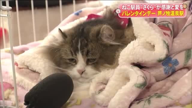 Published by 福島テレビ 会津鉄道・芦ノ牧温泉駅のねこ駅員「さくら」が初めての大役。それが「バレンタインデー」のプレゼントだ。…
