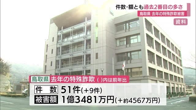 去年1年間の特殊詐欺発生状況について、鳥取県では被害総額・件数ともに過去2番目に多さとなりました。鳥…