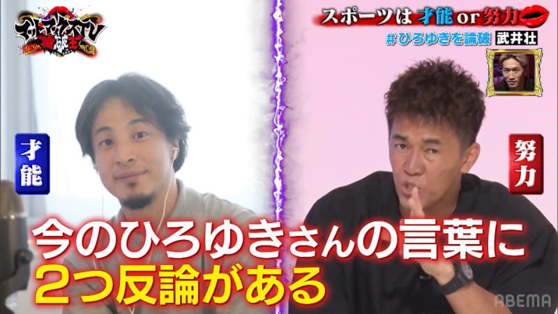 Published by ABEMA TIMES 武井壮とひろゆきが『スポーツは才能or努力』について徹底討論。しかし、体育会系すぎる武井の論破力にひ…
