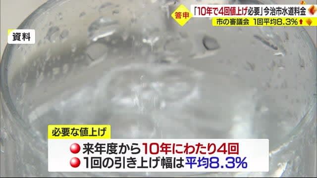 今治市の水道料金について検討してきた市の審議会は10日、市長に対して「今後10年にわたり4回の料金値…