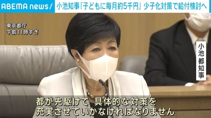 Published by ABEMA TIMES 東京都の小池知事は少子化対策として、18歳までの子どもに月5000円の給付をする考えを明らかにした。…