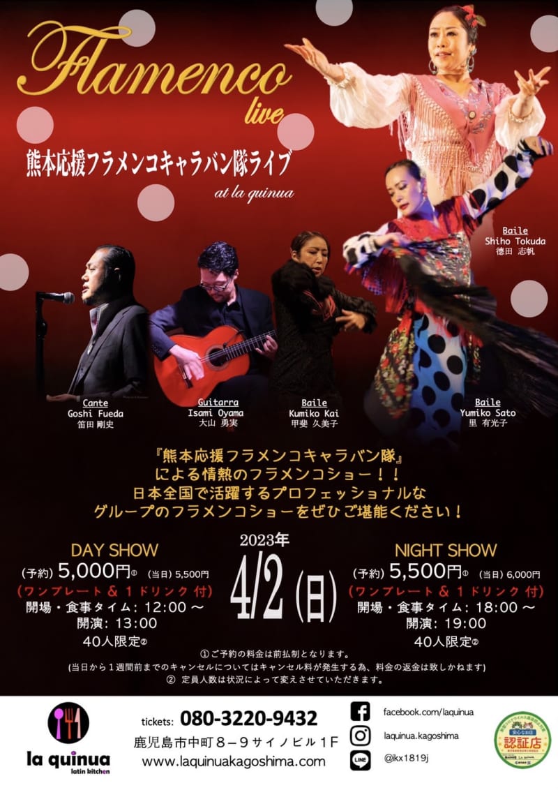 フラメンコライブ at ラ・キヌア情熱のフラメンコショー「熊本応援フラメンコキャラバン隊」*による情…