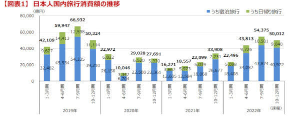 観光庁は2月15日、「旅行・観光消費動向調査」(速報ベース)を発表。2022年10~12月期の日本人…