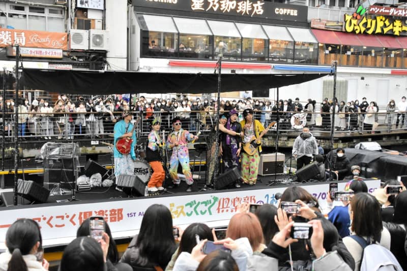 吉本興業の若手芸人6人によるバンド「ジュースごくごく倶楽部」が24日、大阪・道頓堀で船上ライブを開催…