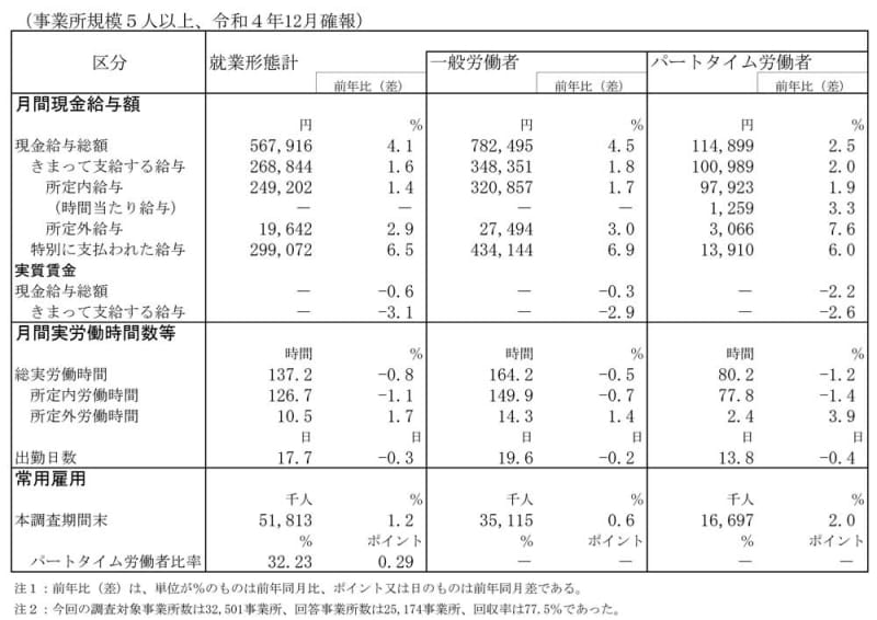 厚生労働省より「毎月勤労統計調査 令和4年12月分結果確報」が公表された。 ポイントは以下の通り。 …