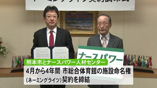 熊本市総合体育館の愛称が、4月から『ナースパワーアリーナ』になります。 1日は、熊本市の大西一史市長…