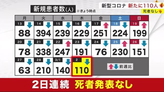 岩手県内では3月2日、新たに110人の新型コロナウイルスへの感染確認が発表されました。 新たに感染が…