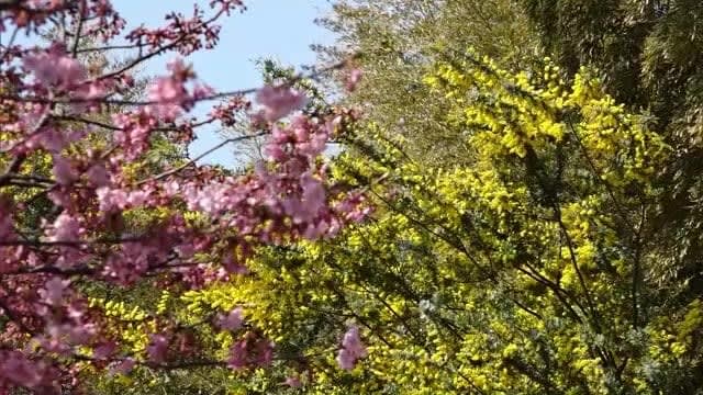 香川県の小豆島の農園で河津桜とミモザが同時に咲き誇り、島に春の訪れを告げています。 目にも鮮やかなピ…