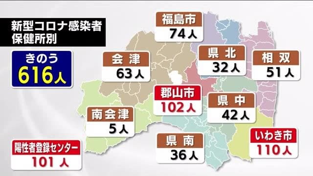 Published by 福島テレビ 新型コロナウイルスについて県内では新たに616人の感染が確認された。感染が確認されたのはいわき市が最…