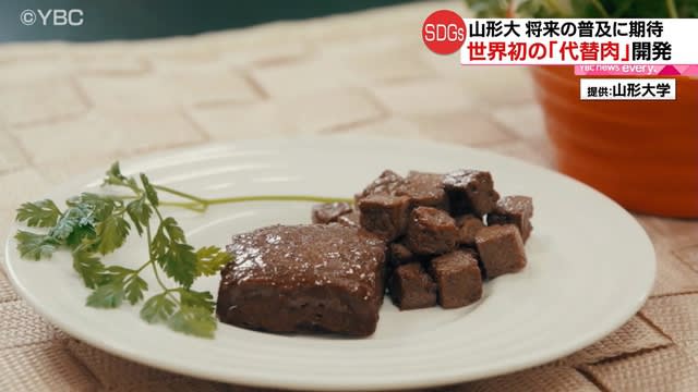 Published by YBC山形放送 山形大学は6日、米のたんぱく質を原料に肉に代わる「代替肉」を作ることに世界で初めて成功したと発表した…