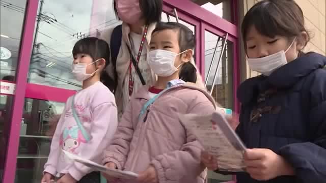 Published by 山陰中央テレビ 14日のバレンタインデーに合わせ、益田市内のショッピングセンターで保育園児が買い物客にチョコをプレゼ…