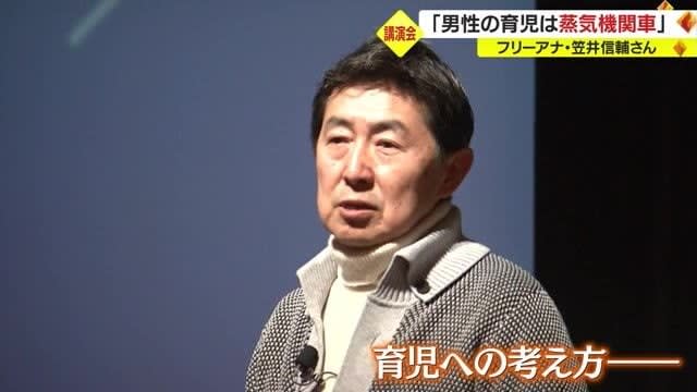 Published by さくらんぼテレビ 東根市で23日、男性の育児参加を促す講演会が開かれフリーアナウンサーの笠井信輔さんが自らの経験談を語…