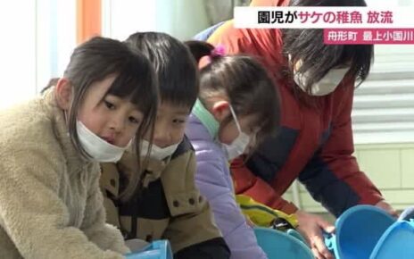 Published by さくらんぼテレビ 山形・舟形町の最上小国川ではサケの稚魚の放流が行われていて、3月6日に地元の園児が手伝った。 サケの…