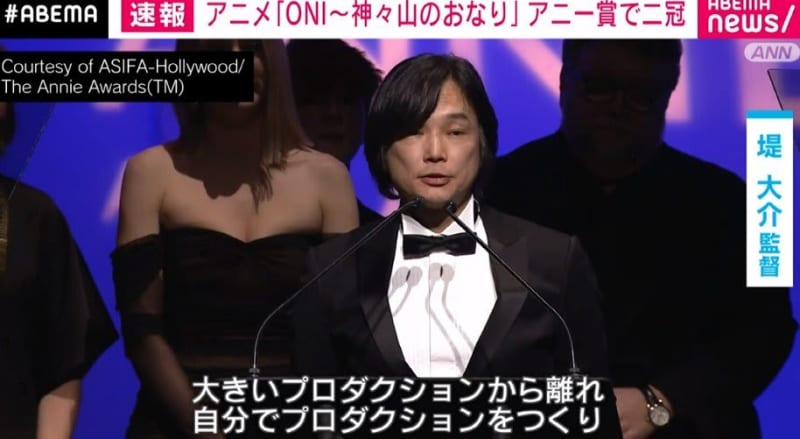 Published by ABEMA TIMES アメリカのアニー賞で、『ONI~神々山のおなり』が二冠を達成しました。 【映像】堤大介監督のコメント…