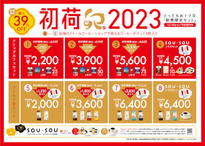 Published by BCN+R ドトールコーヒーは11月10日~12月25日の期間、新春限定セット「初荷2023」の予約を、「ドトー…