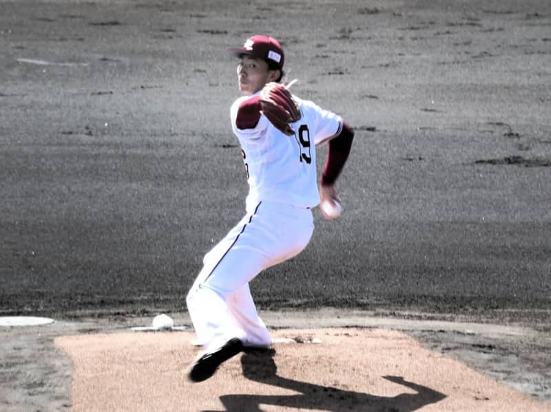 Published by デイリースポーツ 「練習試合、楽天17-1ロッテ」(18日、金武町ベースボールスタジアム) 楽天ドラフト1位の荘司康誠…