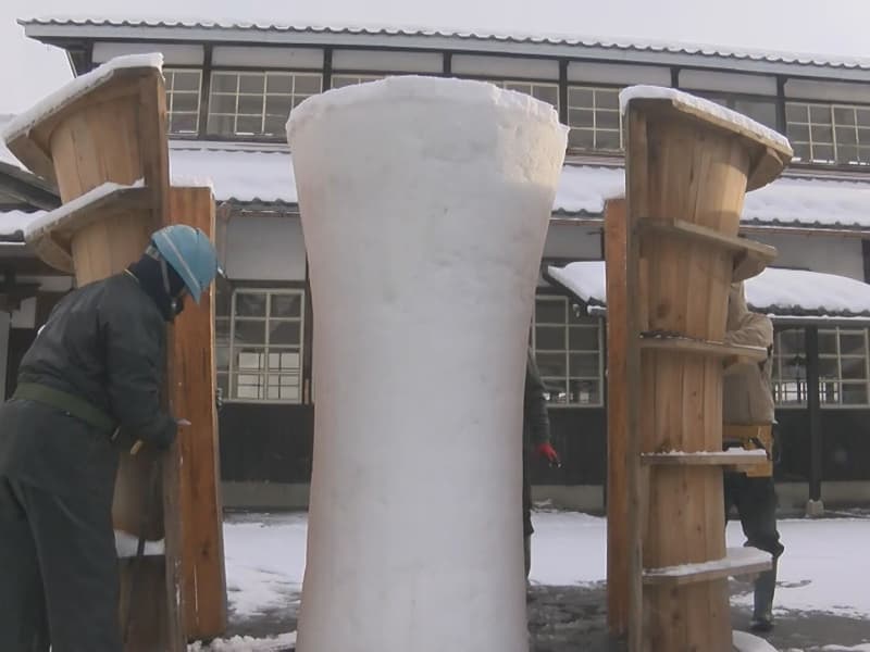 Published by 東海テレビ 岐阜県飛騨市古川町で「三寺まいり」の準備が進んでいます。 雪を固めて作っているのは、巨大な雪のろうそ…