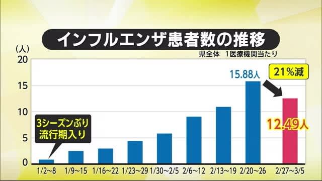 Published by 秋田テレビ 秋田県全体のインフルエンザの患者数は前の週から21%減り、流行期に入ってから初めて減少した。一方で、…