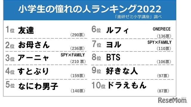 Published by リセマム ベネッセコーポレーションは、2022年の出来事や将来に関する小学生の意識調査を実施し、ランキングを公…