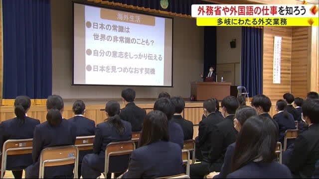 Published by 秋田テレビ 高校生に外務省の役割や外国語を使う仕事について知ってもらおうという講座が、8日秋田市で開かれ、生徒た…
