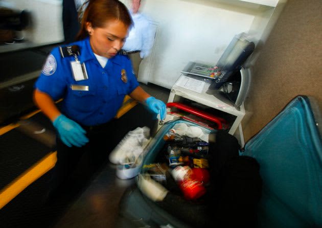 Published by ハフポスト日本版 TSA職員が旅行者の荷物を調べている(イメージ画像) 旅行者が飛行機に持ち込めない物は、凶器や爆発物…