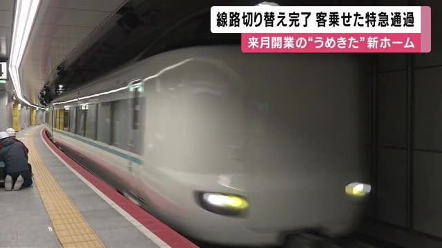 Published by 関西テレビ 3月に開業するJR大阪駅の新しい地下ホームの、特急列車などの線路の切り替え工事が完了し、13日朝、客…