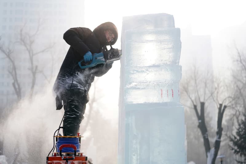 Published by 新華社通信 6日、ハルビン氷灯芸術遊園会の会場で作品を制作する氷彫刻家。(ハルビン=新華社記者/王建威) 【新華…