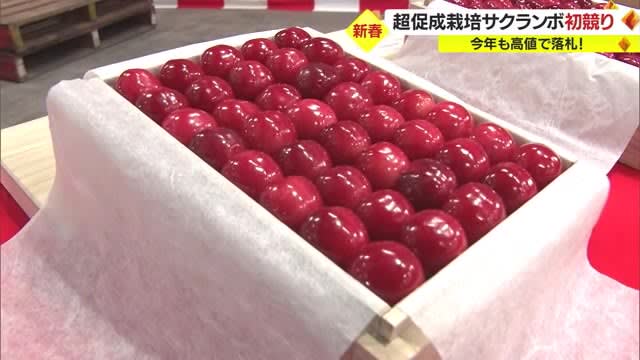 Published by さくらんぼテレビ 新春恒例のサクランボの初競りが5日朝、天童市で行われた。促成栽培された高級品種・佐藤錦に今年も高値が…