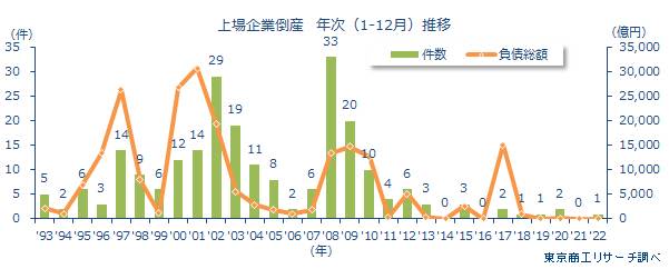 Published by TSR速報 2022年の上場企業の倒産は、8月に破産を申請した東証スタンダードのテラ(株)(東京)の1件にとどま…
