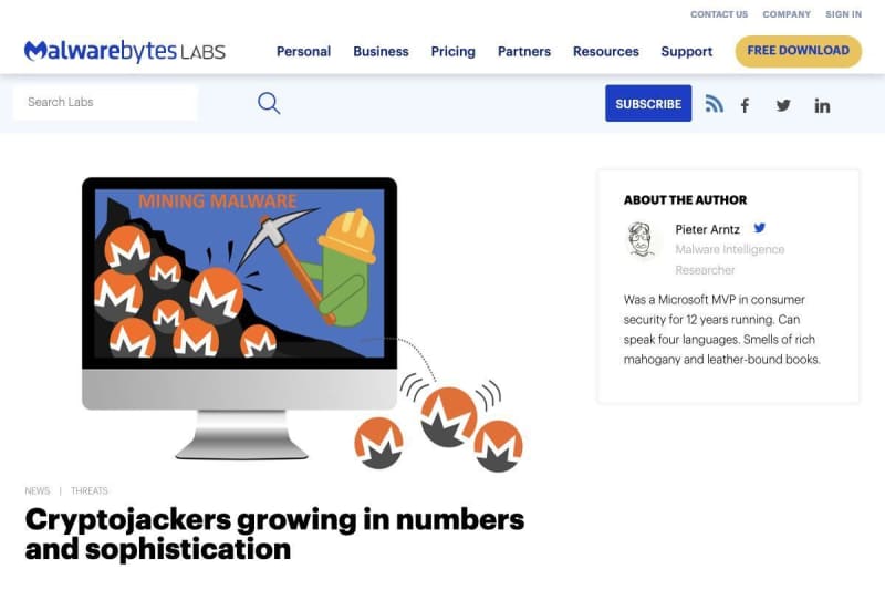 Published by マイナビニュース Malwarebytesは8月22日(米国時間)、「Cryptojackers growing in…