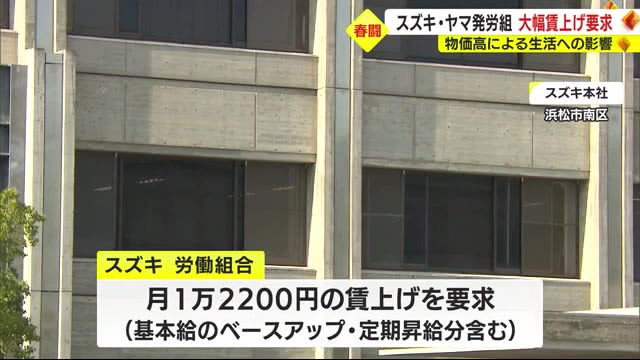 Published by テレビ静岡 2023年の春闘でスズキとヤマハ発動機の労働組合は15日、経営側に例年を上回る賃上げを要求しました。…