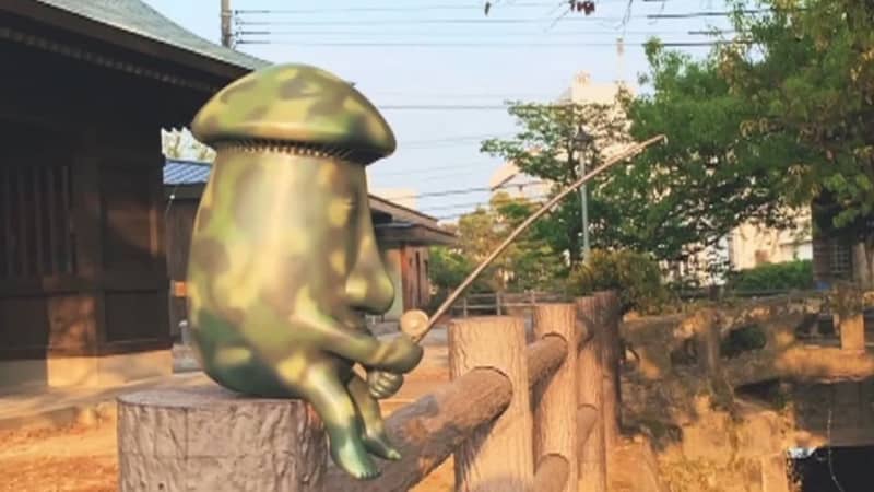 Published by FNNプライムオンライン 柵の縁に腰をかけ、両手で釣り座を持って魚釣りをしている、ちょっと不思議な銅像。 【画像】行方不明にな…