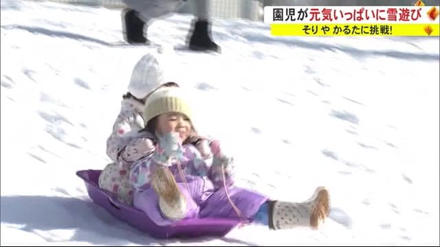 Published by 秋田テレビ 秋田市の幼稚園で8日、子どもたちが雪遊びを楽しんだ。そりにかるた…寒さに負けず元気いっぱいだ。 青空…