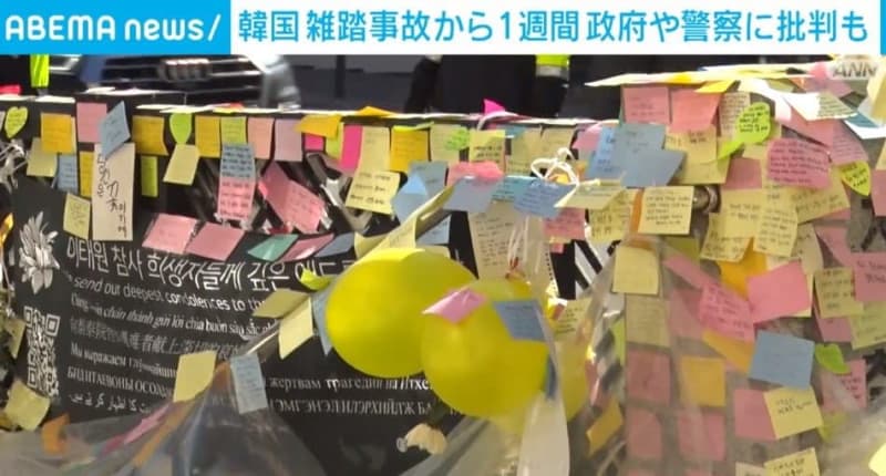 Published by ABEMA TIMES 156人が犠牲となった韓国ソウル・梨泰院の雑踏事故からきょうで一週間となる。追悼の声とともに政府や警…