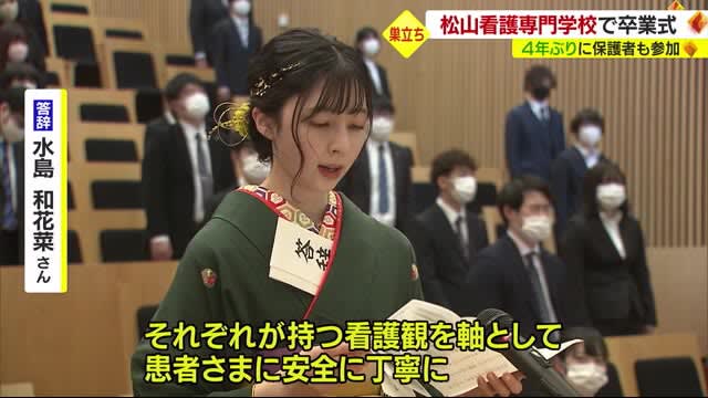 Published by テレビ愛媛 松山看護専門学校の卒業式が2日に行われ、看護師の卵たちが学び舎を巣立ちました。医療現場の第一線で患者…