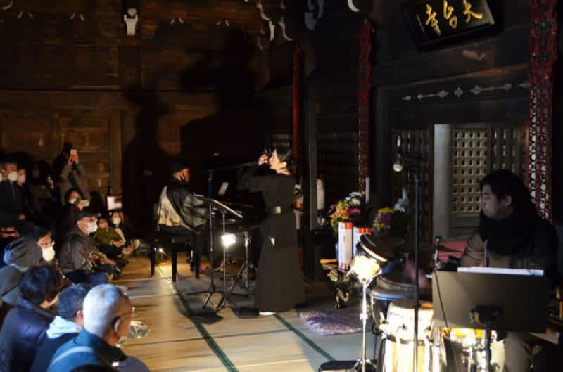 Published by 岩手日報WebNews 二戸市地域おこし協力隊の猿楽(さるがく)さん(45)の旅音ライブは27日、同市浄法寺町の天台寺で開か…