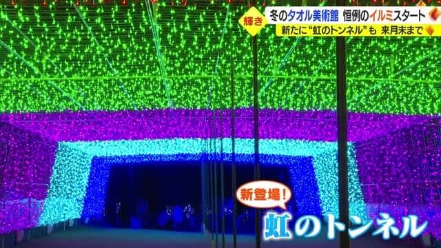 Published by テレビ愛媛 今治市のタオル美術館で、この時季恒例のイルミネーションがスタートしました。 皆さんも「虹のトンネル」…